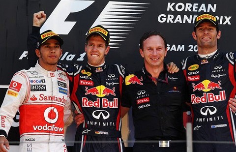 Lewis Hamilton piloto del equipo McLaren y quien en la última vuelta batió record por ser el más rápido, finalizo en el segundo lugar, mientras que el australiano Marck Webber también de Red Bull ocupó el tercer puesto en el podio. El británico Jenson Button, compañero de equipo de Hamilton, obtuvo el cuarto lugar en Corea tras ser adelantado por su compañero.